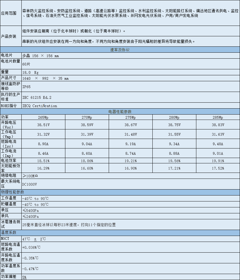 下一篇:280Wp太陽能光伏組件